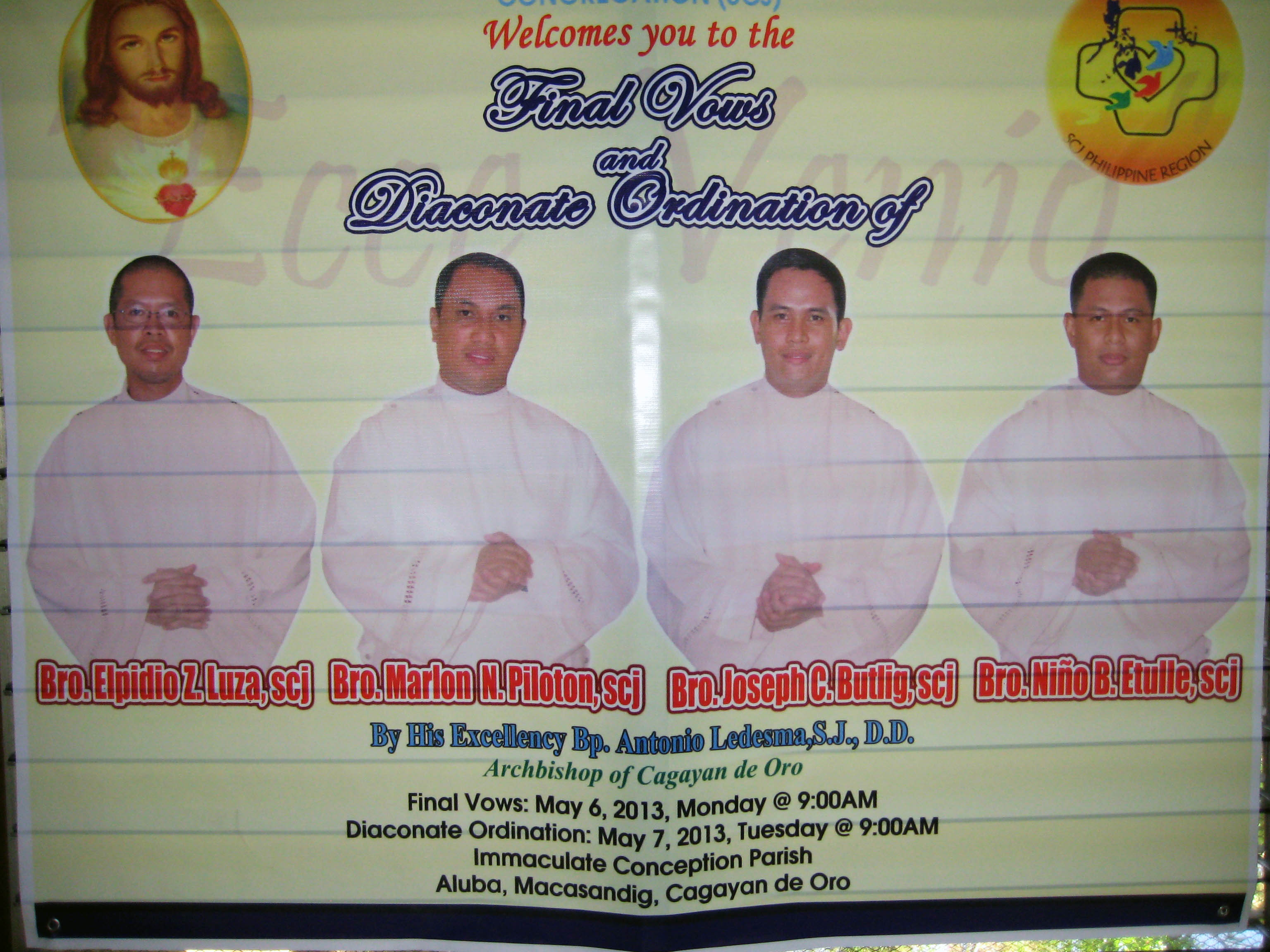 Four members of the Philippines Region took major steps toward their ultimate goal of being ordained priests for service to the Church in Immaculate Conception Parish church in Aluba, Cagayan de Oro city, which was committed to the charge of the Priests of the Sacred Heart less than two years ago.