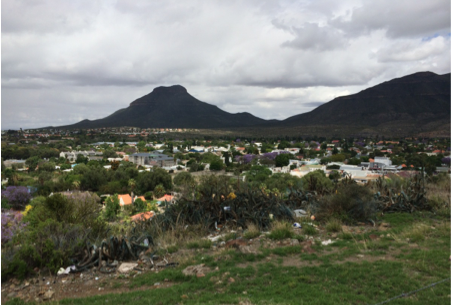 Our trip from De Aar to Graaff-Reinet offered some of the best for scenery in this part of South Africa. The road takes you through two mountain passes, one of about 5,000 feet and the other slightly less. The vistas are broad, and with few trees you can see for miles. We managed also to catch a glimpse of springboks and monkeys on the way and a large turtle crossing the road upon our return home today.