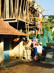 A few minutes’ walk toward the parish of St. George I spotted this construction site. It would be typical of what you’ll see in much of India outside the large cities. Most structures are made of steel and concrete. You’ll note the extensive supports holding up the roof above the second story. Note too the cement is mixed on site and though the photo only hints at it much of the work is labor intensive. With a population of over a billion people labor is not in short supply.