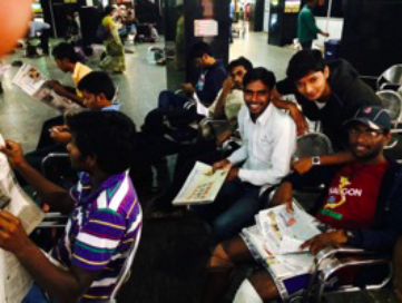My anxiety was well founded! At about 5:50 a.m. we arrived at what looked like Chennai and the station from which we departed Wednesday evening. Many people were getting off so I got off as well. I know my car was near the front of the train and the rest were somewhere behind my location. I started walking toward the rear a bit surprised I did not see anyone from our group. At about that moment from the window of one of the cars Libin called out: