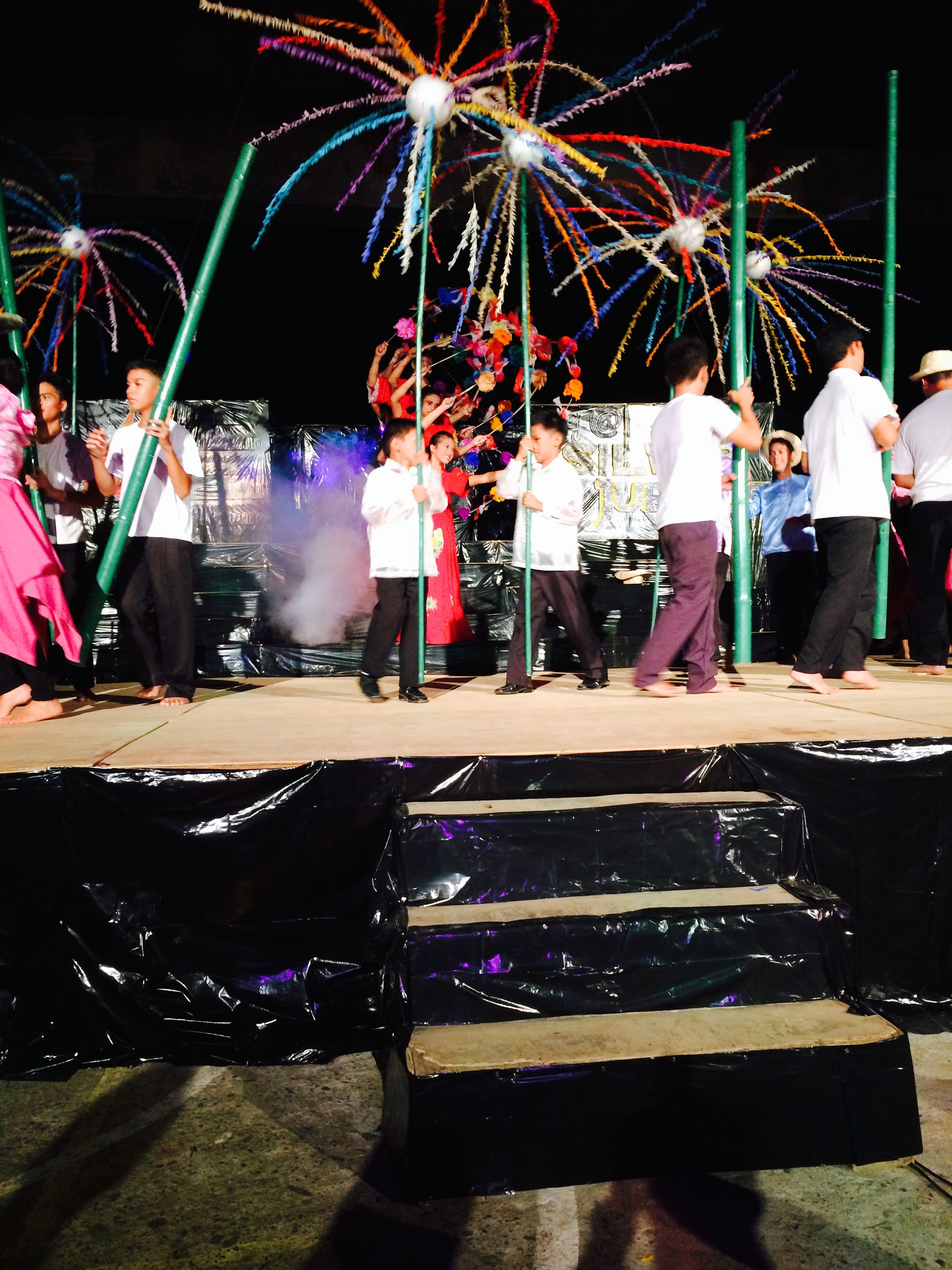 The show lasted about two hours and interspersed between some of the acts was a narration of the 25-year history of the SCJ presence in the Philippines. During the course of the show we had young girls (maybe between 8 and 10) come by with water and sweets for us to enjoy. As the SCJs were the honored guests we were seated in the front row on chairs in front of the bleachers and close to the stage.
