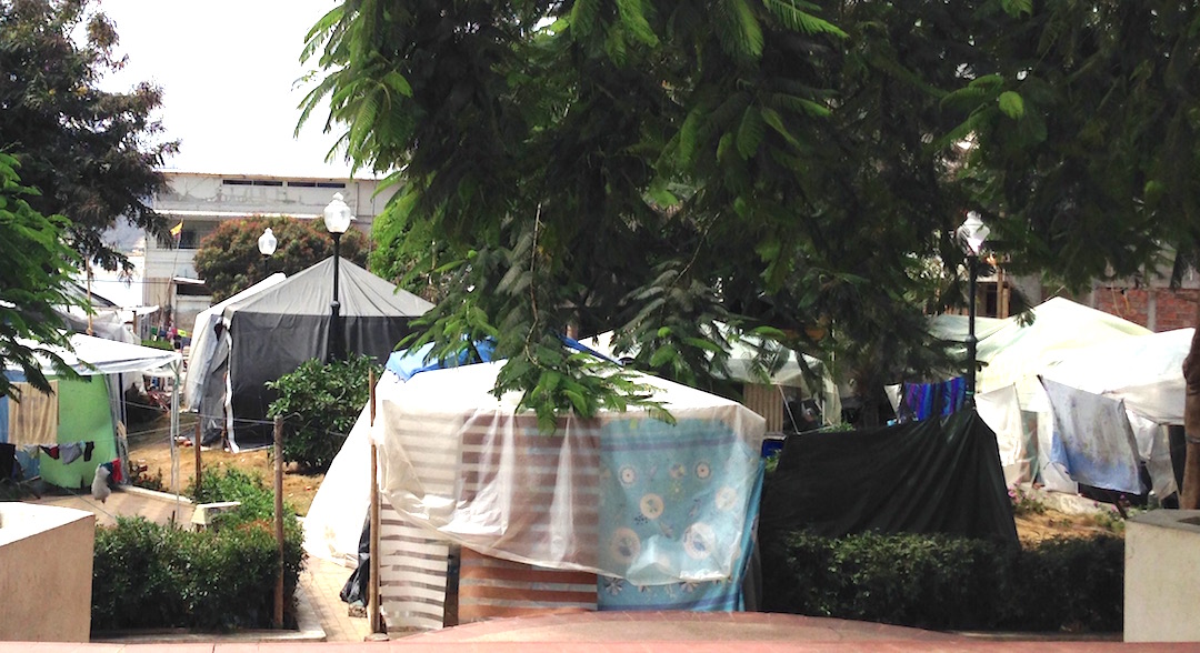The plaza in front of Our Lady of Merced Church holds a tent city. We also passed rows of tents on the outskirts of town.